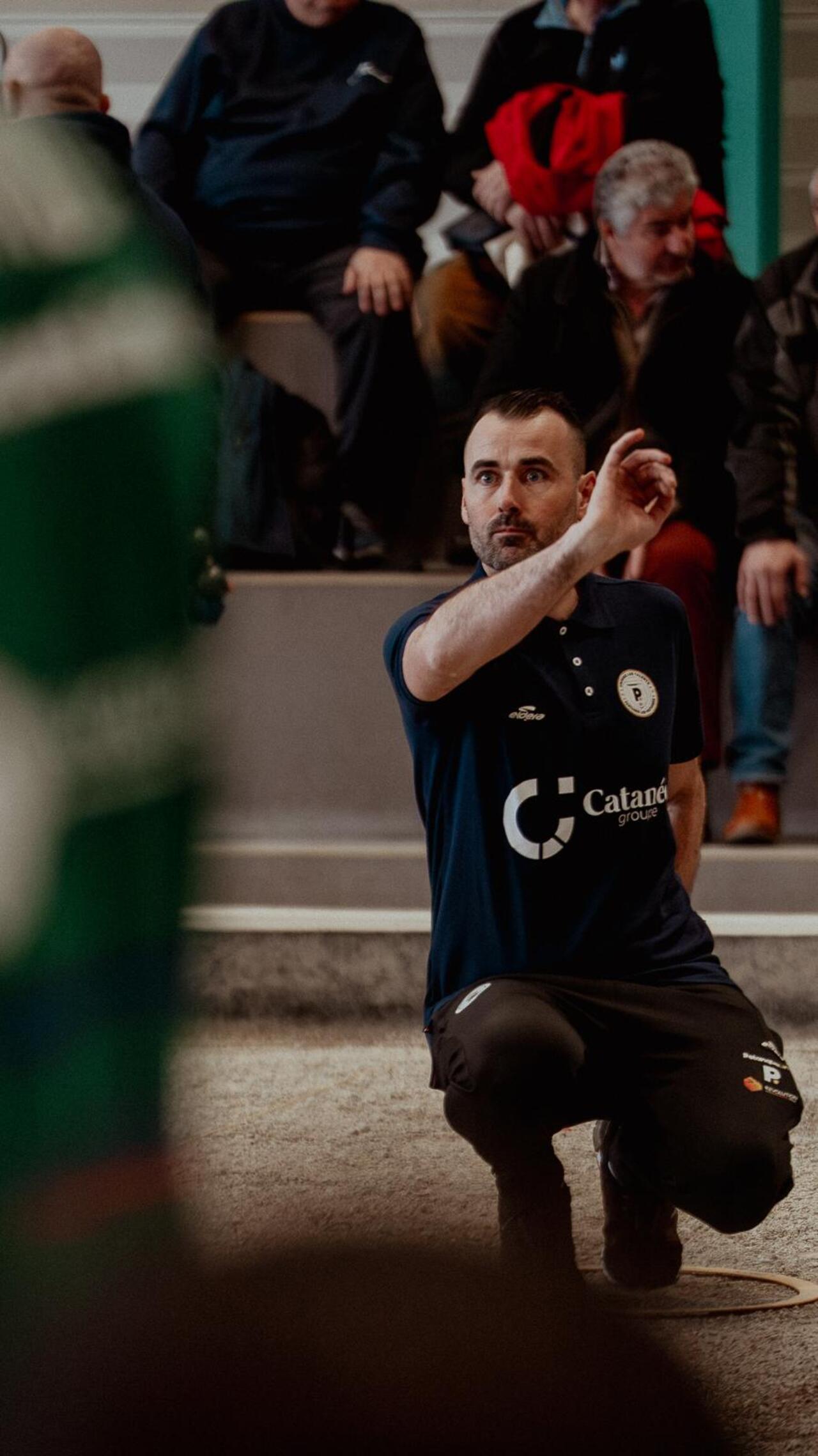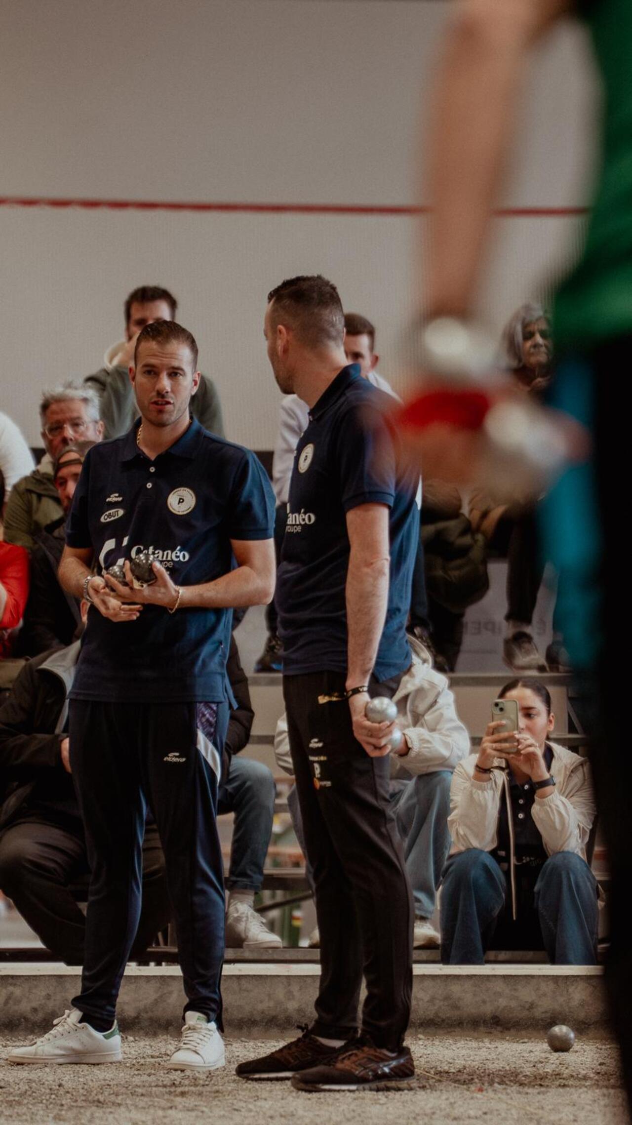 On s’en doutait : nous avions quitté Mason Durk à Cagnes en octobre, après un Europétanque des Alpes-Maritimes qu’il avait survolé en compagnie de Rocher et Robineau, et nous l’avons retrouvé à Genève en compagnie de l’un de ses tireurs préférés, Kevin Prudhomme. Intact et toujours aussi flamboyant. Il paraissait clair, au vu du jeu incisif et spectaculaire que déployaient les deux joueurs dès samedi, qu’il faudrait compter avec leur doublette dans le Geneva Indoor.