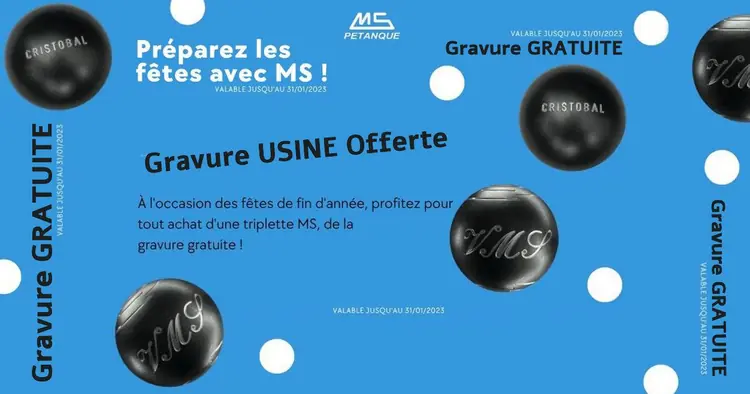 MS vous offre la gravure usine pour les fêtes de fin d'année 2022 - Boules de pétanque avec technologie Anti-Rebond