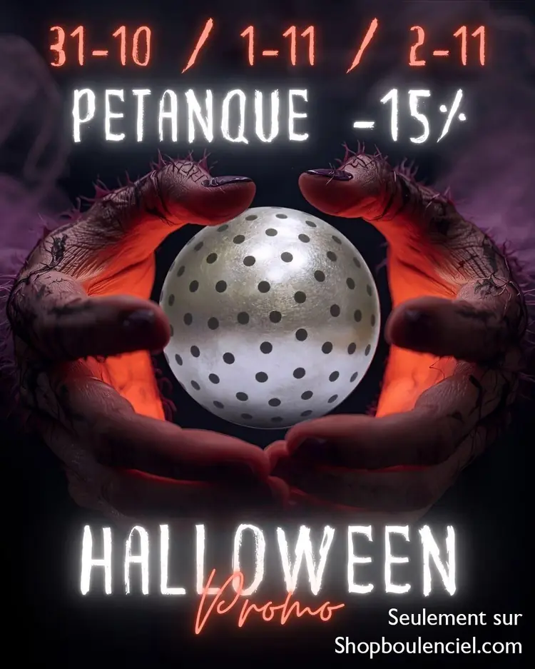 Boulenciel fête Halloween avec 15 % de réduction sur toutes ses boules de pétanque ! Seulement sur