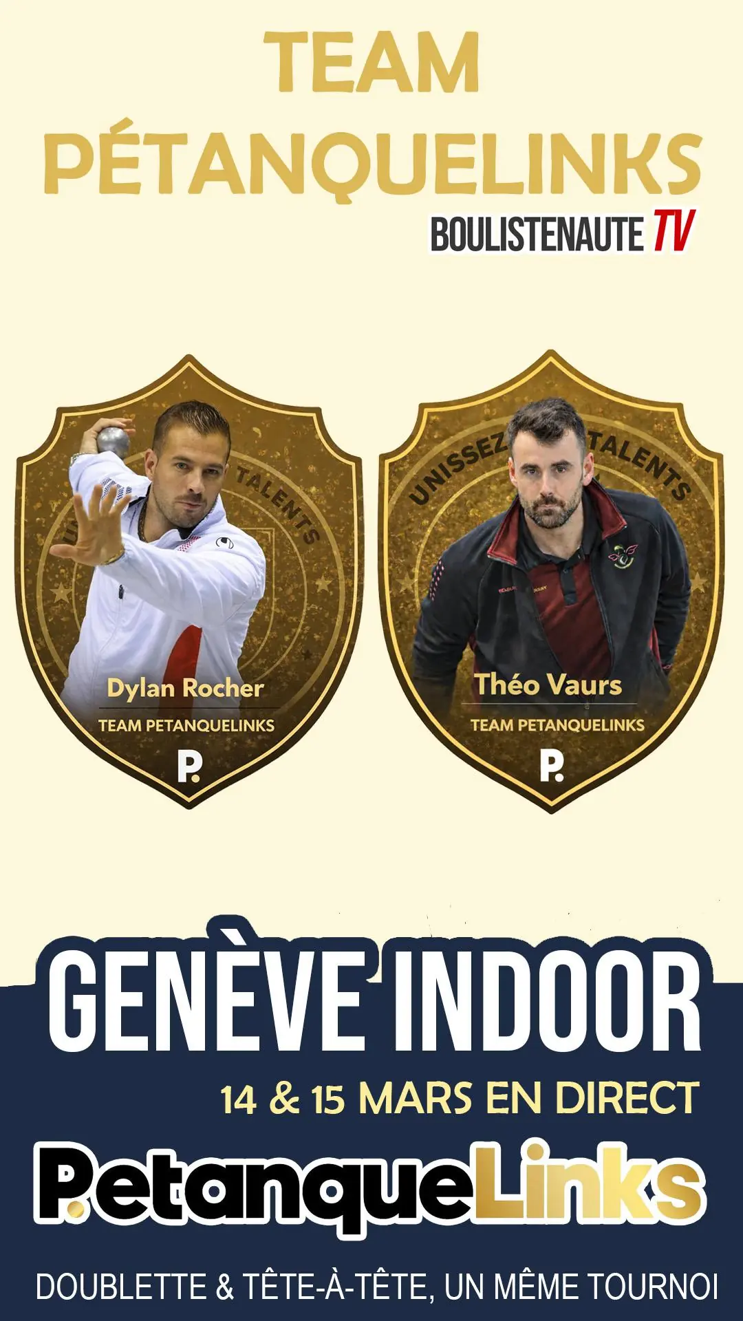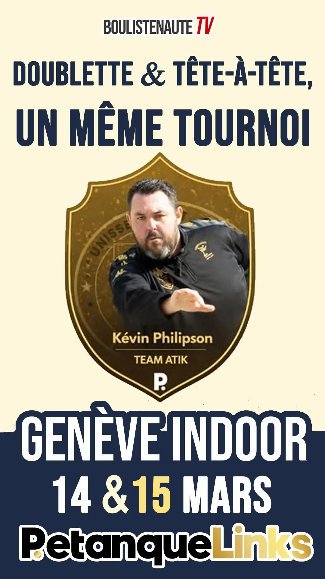 Genève Indoor, point de départ de la saison Boulistenaute TV 2026 Le Geneva Indoor ft. PetanqueLinks 2026 ouvrira, les 14 et 15 mars prochains à Genève, la tournée 2026 de Boulistenaute TV. Cette première date n'a rien d'anodin. Elle marque la naissance d'un rendez-vous inédit en salle, créé en remplacement de l'Hivernal de Genève. Un événement que Boulistenaute a régulièrement accompagné en direct au fil des saisons, au point que l'un de ses commentateurs, Stéphane Cagnon, y a même pris part en tant que joueur. Une continuité logique, donc, pour Boulistenaute, qui se réjouit d'accompagner cette nouvelle étape.