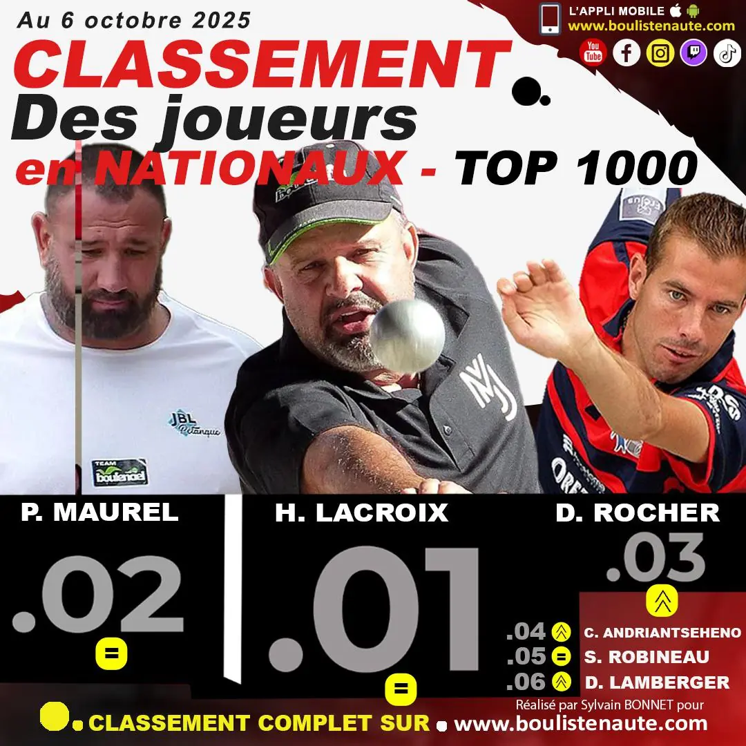 Champions des Nationaux de pétanque : 2002-2024, une dynastie de talents Depuis 2002, de nombreux grands noms de la pétanque ont brillé sur la première marche du podium du classement non officiel des joueurs dans les nationaux, maintenu par Sylvain Bonnet depuis plus de 20 ans. En 2002, Michel Schatz, surnommé "Passo", a ouvert cette série de succès. Philippe Quintais, légende de notre jeu, a enchaîné avec des victoires consécutives en 2003 et 2004. Ensuite, Henri Lacroix, a pris la relève en 2005. Chaque année a vu un nouveau champion, avec Alain Charlet en 2006, Stéphane Robineau en 2007, et Matthieu Gasparini en 2008.