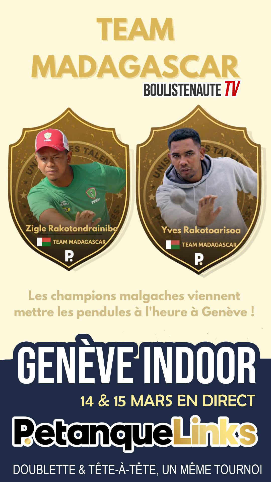 La saison Boulistenaute TV 2026 s'ouvrira à Genève les 14 et 15 mars avec le Geneva Indoor ft. PetanqueLinks 2026. Un tournoi qui réunira 24 doublettes invitées, composées de joueurs bien connus des amateurs de haut niveau.