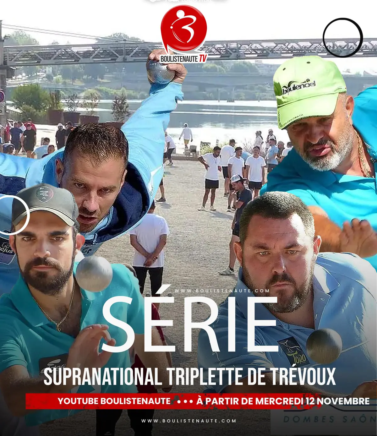 La série de vidéos pétanque : Supranational Triplette Open de la Ville de Trévoux 2025 - TOP 1000 Revivez sur notre chaîne YouTube l’intégralité du Supranational de Trévoux, l'une des références majeures du calendrier et triplette le plus suivi de la saison. La finale a rassemblé 38 000 passionnés en direct, un sommet d’audience qui témoigne de l’intérêt croissant pour cet événement. Les parties du samedi 16 et du dimanche 17 août 2025 sont désormais disponibles en rediffusion. Pour rester informés de nos prochaines diffusions, pensez à vous abonner et à activer les notifications. Les diffusions en première vous permettent de suivre les matchs comme en direct et d’échanger en temps réel avec la communauté sur le chat YouTube.