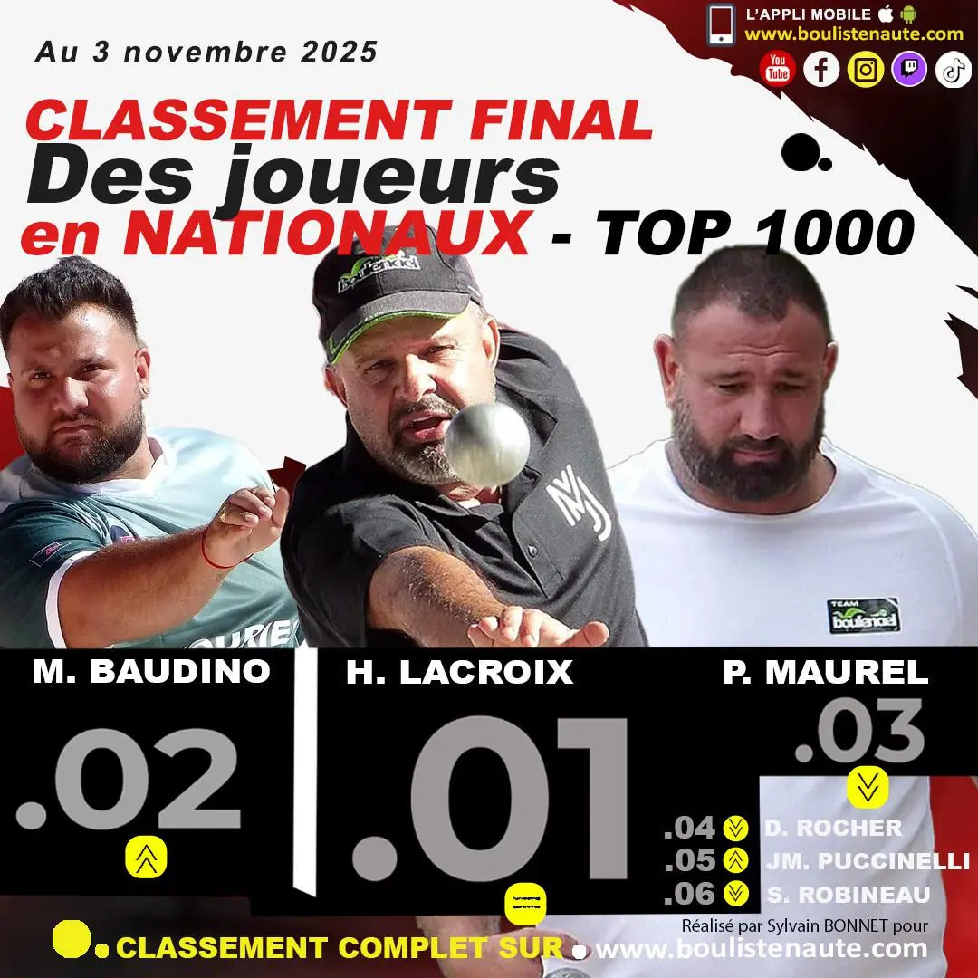 Champions des Nationaux de pétanque : 2002-2024, une dynastie de talents Depuis 2002, de nombreux grands noms de la pétanque ont brillé sur la première marche du podium du classement non officiel des joueurs dans les nationaux, maintenu par Sylvain Bonnet depuis plus de 20 ans. En 2002, Michel Schatz, surnommé "Passo", a ouvert cette série de succès. Philippe Quintais, légende de notre jeu, a enchaîné avec des victoires consécutives en 2003 et 2004. Ensuite, Henri Lacroix, a pris la relève en 2005. Chaque année a vu un nouveau champion, avec Alain Charlet en 2006, Stéphane Robineau en 2007, et Matthieu Gasparini en 2008.